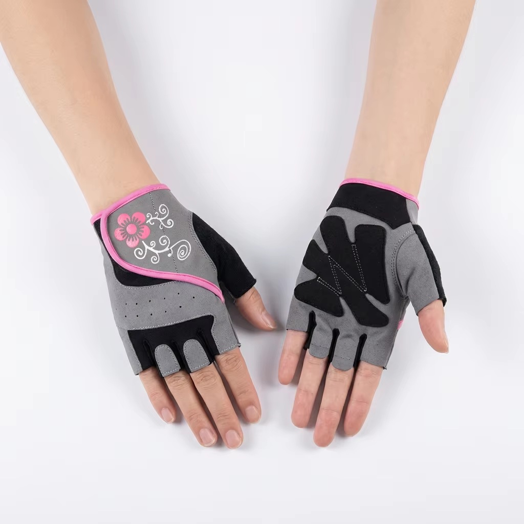 Ladies Cycling Gloves Half Finger Padded Palm Flower D1
